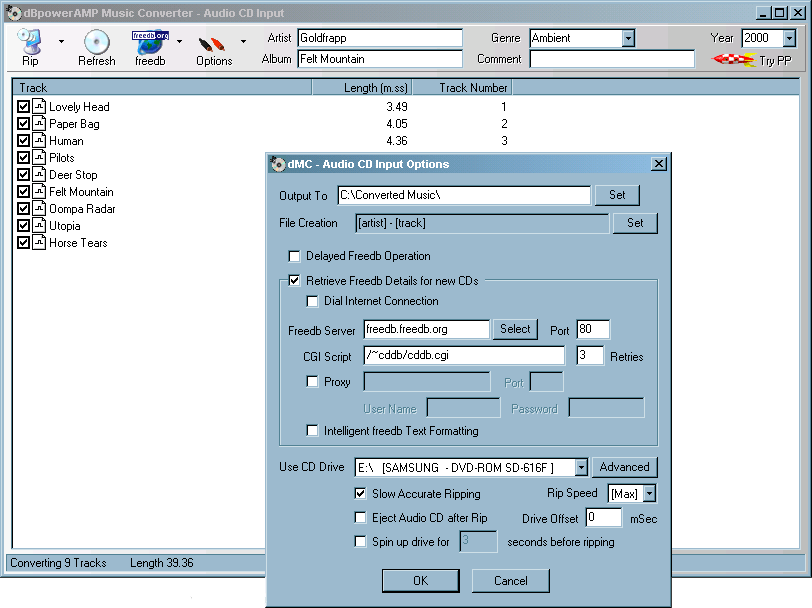 Un software in grado di rippare da CD, di convertire un formato audio in un'altro, di registrare da una qualsiasi fonte (lp, cassetta, radio...) dall'ingresso della scheda audio, di editare gli ID tags e visualizzare le info di traccia.dBpowerAMP si compone di due software distinti che potrete richiamare dal menu start: il music converter, dal quale scegliete un file audio e operate la conversione, e il cd ripper, dal quale trovate le opzioni per estrarre le tracce audio.