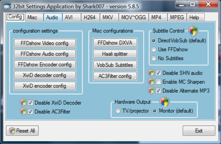 Vista Codec Package si propone proprio come seconda soluzione, infatti installandolo si avranno immediatamente disponibili tutti i codec più utilizzati. Attraverso la voce del menu programmi si accede all'interfaccia delle preferenze di configurazione, in cui si trovano, divisi in tab, le opzioni per ogni codec.