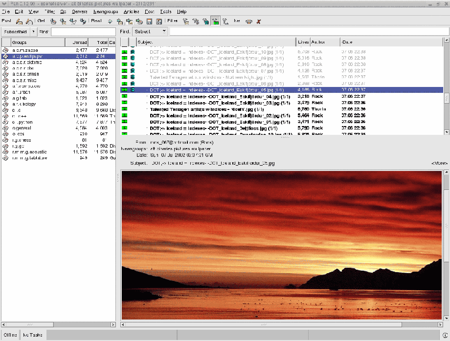 Pan è un'ottimo newsreader opensource. E' compatibile con le più diffuse distribuzioni GNU/Linux, FreeBSD, NetBSD e MacOS X.Leggero e veloce non ha nulla da invidiare in quanto a funzionalità al celebre KNode.