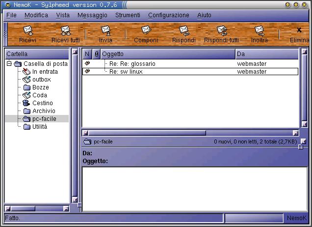 Uno dei mail client che ha riscosso più successo nella comunità OpenSource! Qualche funzionalità in meno rispetto ai più massicci Kmail o Evolution, dovute anche alla sua giovinezza, ma in compenso offre una leggerezza che la concorrenza gli invidia: è stupefacente vederlo girare con disinvoltura anche su macchine datate.....L'interfaccia non ha nulla da invidiare nemmeno ai cugini di casa Microsoft e tutte le funzionalità risultano intuitive e di facile accesso, anche per quanto riguarda le configurazioni. Tali configurazioni sono eventualmente accessibili nella directory ".sylpheed" per chi volesse editale a mano.