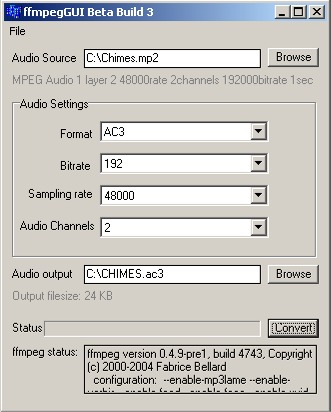 Se state cercando un programmino semplice e veloce per estrarre e convertire l'audio dai video AVI e MPG, o avete un file audio WAV o MP3 da convertire in formato audio AC3 o MP2, ffmpegGUI è quel che ci vuole.Si tratta di una Graphical User Interface (Interfaccia grafica per l'Utente) basata sul progetto ffmpeg, un tool di conversione audio/video che utilizza libavcodec, la principale raccolta di codec open source.