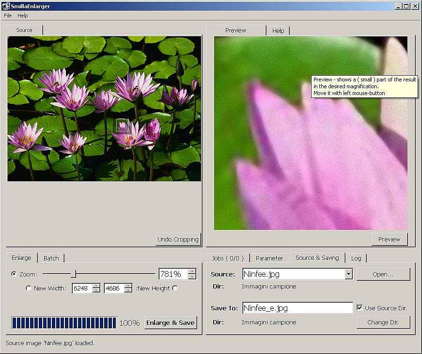 Non vogliamo indagare sullo stato delle vostre sinapsi, né sulla conducibilità elettrica dei vostri percorsi neuronali, ci limiteremo, come sempre del resto, a suggerire un software: Smilla Enlarger è un programma che può essere d'aiuto a chi ha necessità di visualizzare meglio un piccolo particolare di un'immagine. Può essere la faccina nascosta di quel bambino (chi sarà? il cuginetto? la cuginetta?), quella macchia nell'angolo (un fiore? un sasso? un "ricordo" del cane del vostro vicino?) o qualsiasi altra cosa: grazie al particolare algoritmo, ingrandendo la fotografia originale non vedremo solo dei grossissimi pixel, ma otterremo una visuale più ampia e ben definita dell'originale.
