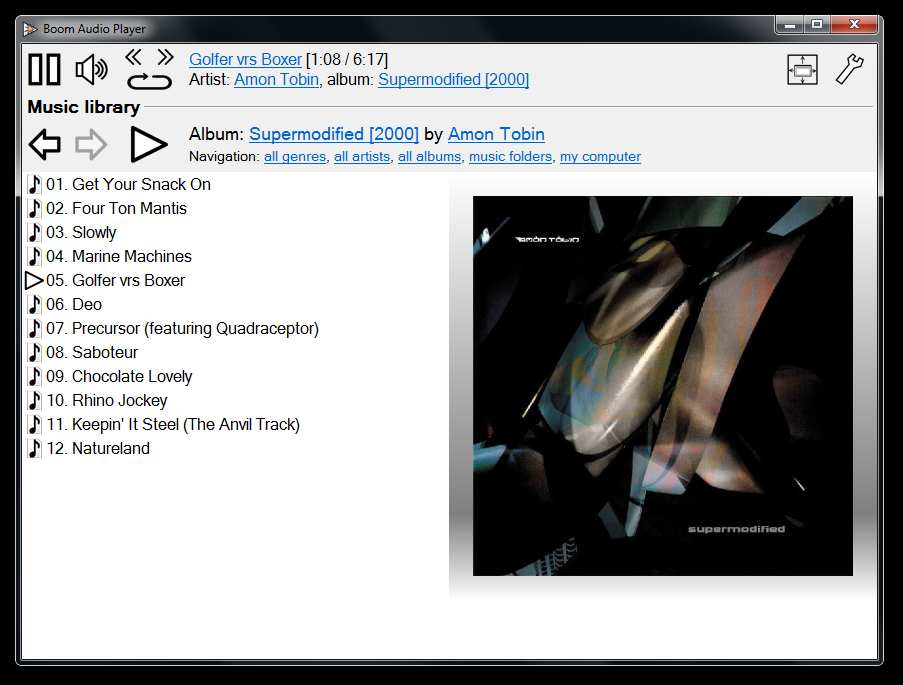 Dallo stesso creatore di foobar2000, Boom è un audio player rivolto agli utilizzatori di PC meno esperti o che comunque non intendono perdere tempo a configurare sofisticate opzioni. Le funzionalità più importanti sono facilmente ed immediatamente accessibili al termine del download.Vantaggi: