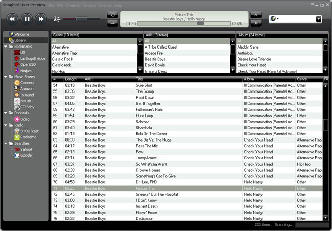 Songbird supporta estensioni e add-on come firefox e questo lo rende un player molto molto particolare e innovativo.