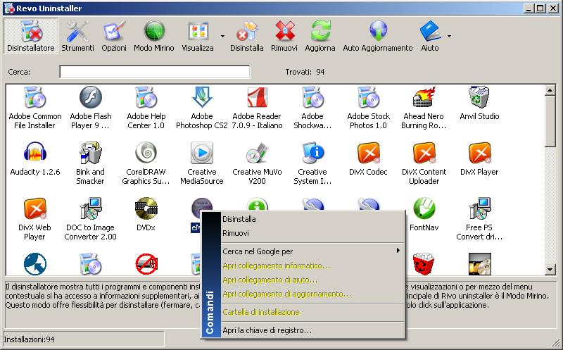 Che siate sperimentatori incalliti di nuovi software o maniaci dell'ordine, vi sarà capitato di desiderare un programmino che possa in modo semplice guidarvi nella disinstallazione, pulizia del registro, cancellazione "senza ritorno" di file, eliminazione delle "tracce d'uso" dal vostro PC.Revo Uninstaller incorpora tutte queste funzioni per venire incontro anche ai più pigri.