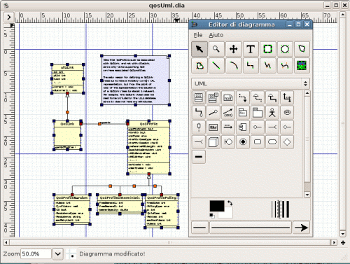 Un ottimo programma open source per la creazione di diagrammi, ispirato al più noto programma per windows Visio. Tramite un'interfaccia semplice ed intuitiva, Dia consente di creare con facilità schemi e diagrammi, che possono essere esportati in vari formati tra cui EPS, SVG e PNG.E' incluso il supporto per moltissimi tipi di schemi diversi: diagrammi di flusso, schemi circuitali, ladder diagrams, schemi GRAFCET, diagrammi UML, reti logiche, e molti altri ancora. Per ogni simbolo è possibile editare diverse proprietà, a seconda del tipo di schema di appartenenza; ad esempio in UML è possibile specificare attributi e metodi delle varie classi, molteplicità delle relazioni, etc. E' possibile aggiungere ulteriori simboli customizzati fornendo un'opportuna definizione del nuovo simbolo in XML.