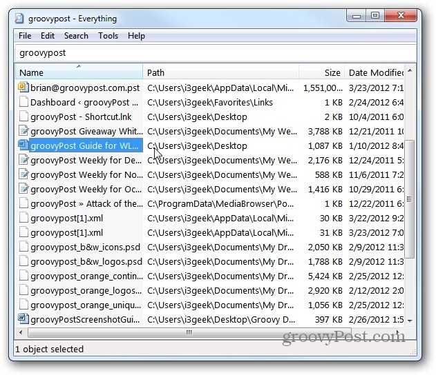 L'interfaccia è spartana e pulita e al primo avvio Everything si prende qualche minuto per la creazione del database, una volta completata quest'operazione, è possibile eseguire la ricerca voluta. La sorpresa maggiore è che i risultati sono immediati e compaiono nel riquadro sottostante.