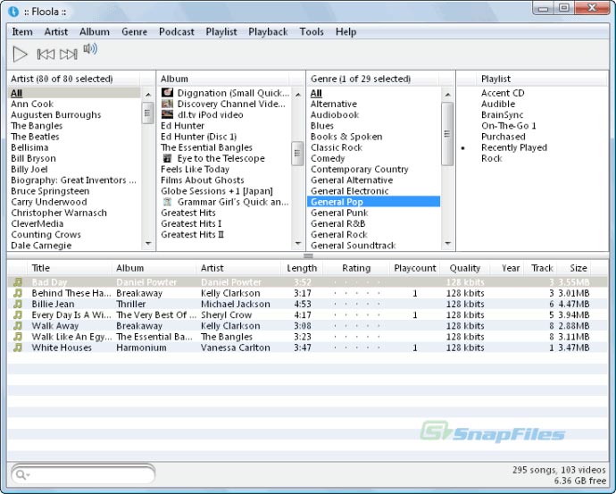 Non sono molti i software che permettono di gestire correttamente un iPod o uno shuffle, e qualcuno può essere scontento del programma iTunes di Apple, che risulta spesso scomodo.Floola si propone proprio come sua alternativa, leggera e stand alone, infatti non necessita di installazione.