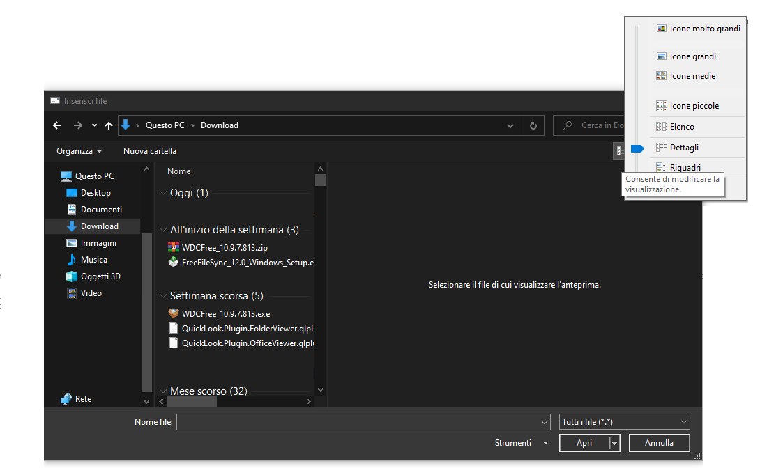 Anche se cambi la visualizzazione della finestra di selezione del file?