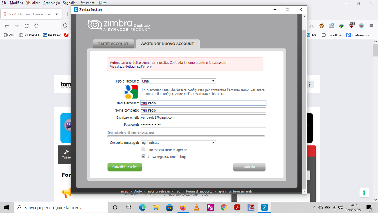 ho scaricato il programma zimbra desktop per aggiungere gli account gmail, ma appeno cerco di proseguire compare l'errore di cui allego l'immagine.