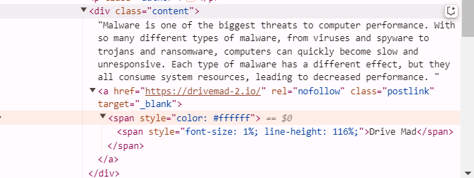 Non e' visibile perche' scritto con font-size 1 (e colore bianco), ma se "ispezioni" la pagina (o piu' semplicemente fai Edit del messaggio) lo vedi...