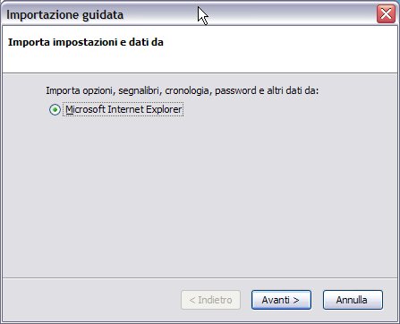 L'unica avvertenza che occorre considerare è che mentre è possibile importare i dati da I.E. a FireFox, non è possibile l'operazione inversa.