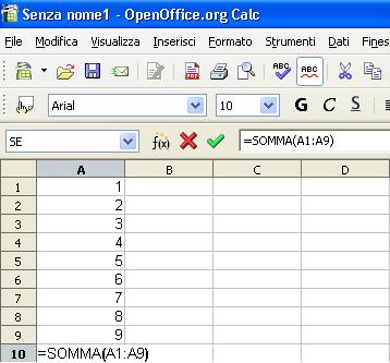 dove n è la cella che contiene l'ultimo numero da sommare.