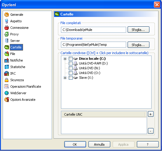 I files una volta completati vanno a finire nella cartella di eMule che abbiamo scelto. Per impostare una certa cartella è necessario scegliere Opzioni > Cartelle