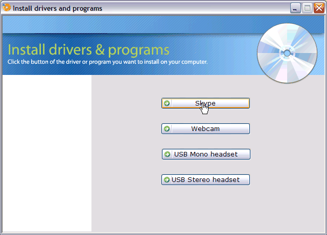 Se si dispone di un supporto magnetico, inserirlo e fare click sul pulsante Skype per avviare la procedura guidata di installazione.