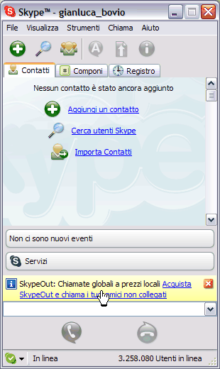 A questo punto, è immediatamente possibile utilizzare il software, ma solo per effettuare chiamate destinate ad altri utenti dotati di un account.