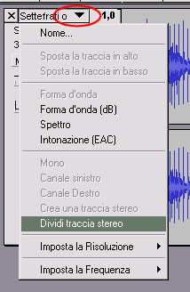 Cliccare sulla freccia nera vicino al titolo della traccia e cliccare Dividi traccia stereo