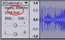 Cliccare sulla traccia più in basso (quella "Destra") nell'area in cui compaiono i bottoni "mute" e "solo" in modo che tutto lo spettro appia evidenziato