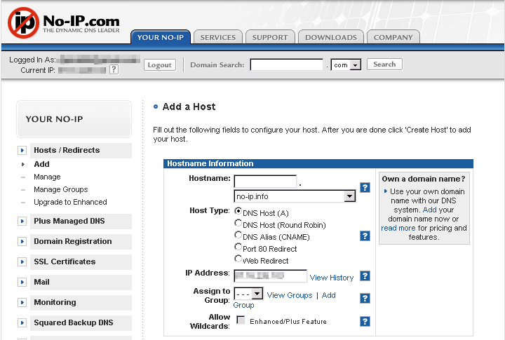 L'utilizzo dei servizi di no-ip.com è molto più versatile e complesso di quanto spiegato in questa pagina, il cui intento era solo far scoprire all'utente le potenzialità che offrono lasciando la possibilità di scoprire autonomamente in modo graduale e secondo le necessità le configurazioni e gli utilizzi più congeniali ;)