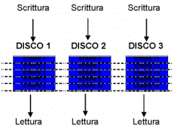 Striping: i dischi vengono uniti logicamente in un'unica unità.