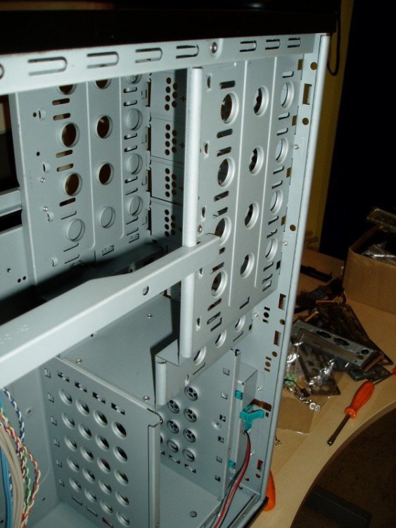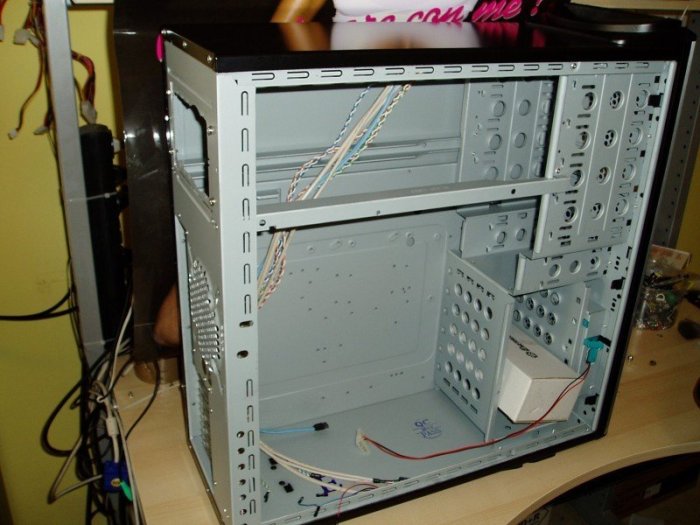 Abbiamo proceduto alla rimozione della paratia di sinistra che si smonta senza l'ausilio di un cacciavite ma grazie a due macro viti. E' bene fare attenzione che la paratia non scorre, ma ruota in senso antiorario per essere tolta. A ricordare questa interessante ed agevole caratteristica, troverete un foglietto all'interno dell'imballaggio. Viste le notevoli dimensioni del cabinet (216 x 552 x 550 mm) lo spazio interno è vasto. Predisposto per alloggiare motherboard di tipo EEB, CEB, TEB, ATX e microATX, è stato concepito per accogliere fino a cinque unità da 5.25 '' e due unità da 3.5'' con accesso dall'esterno (es. lettori e masterizzatori CD-DVD, floppy disk), più sei drive bay per unità da 3.5''. Il montaggio nei drive bay dei dispositivi può avvenire anche senza viti grazie alle staffe in dotazione.