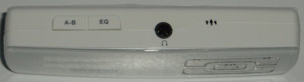 Nella parte superiore vi sono due tasti per decidere la modalità di riproduzione (tasto A-B) e l'equalizzatore. Accanto vi è la presa per le cuffie.