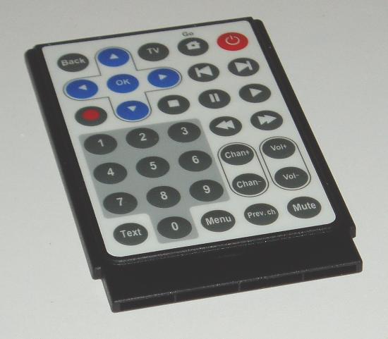 Per il miglior confort, il dispositivo è fornito di telecomando ultrapiatto a trentacinque tasti, funzionante con batteria a bottone, idoneo per essere inserito in una porta PCMCIA di qualsiasi notebook.