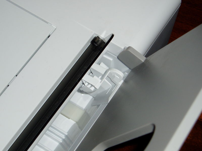 Abbiamo però notato un fastidiosissimo problema nel caricamento della carta: inserendo fogli A4, il regolatore ferma carta non è in grado di mantenerli in asse (in quanto posizionato in basso vicino ai rulli) quando la carta viene agganciata dai rulli e trascinata nella zona di stampa. La conseguenza è che il foglio ha un leggero sbandamento verso sinistra entrando nella stampante leggermente disassato. Per ovviare al problema è necessario appoggiare un dito al margine superiore sinistro del foglio affinché venga trascinato nel modo corretto.