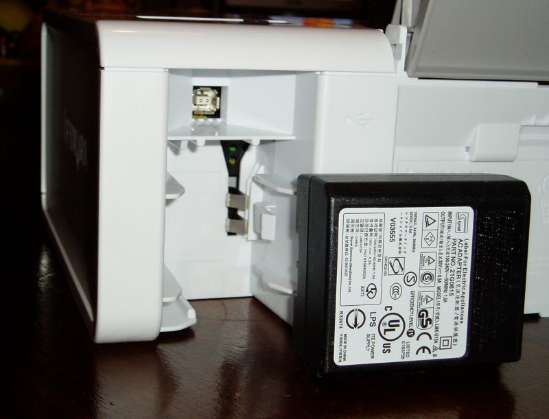 Frontalmente presenta il cassetto estraibile per recuperare il documento stampato; posteriormente vi sono le prese per il connettore USB nonché per l'alimentatore. Quest'ultimo si innesta quasi totalmente nel corpo della stampante facendolo sembrare quasi un corpo unico.