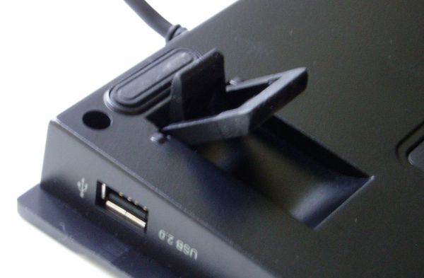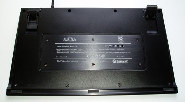 Nella parte inferiore vi sono due piedini che regolano in altezza la tastiera ovvero è possibile inclinarla con tre livelli differenti. Infatti ogni piedino ne ha al suo interno un secondo più piccolo in modo da generare la tripla inclinazione.
