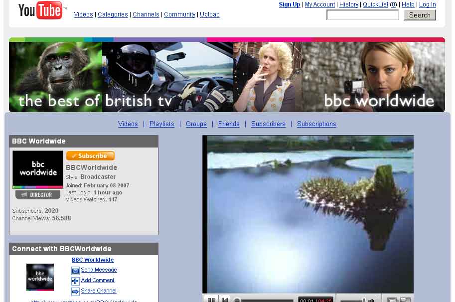I canali attivi sono "Bbc-Worldwide" e "Bbc" e tra breve anche Bbc News sarà visionabile a tutto il mondo... tutto il mondo tranne gli inglesi che non potranno accadere ai video in quanto pagano il canone che finanzia la BBC.