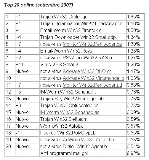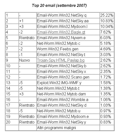 C.S. Kaspersky: Top 20 Online e Email Settembre 2007