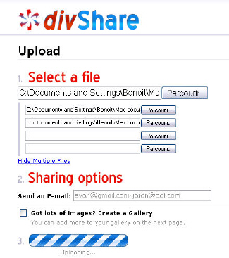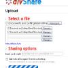 Per fare l'upload basta selezionare il file da caricare sul server di DivShare e cliccare sul pulsante Upload.