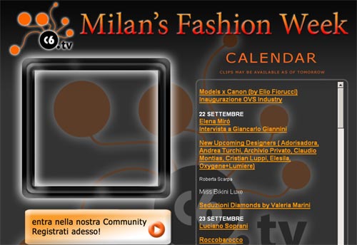 In questi giorni la moda milanese è online: tutte le sfilati sono infatti disponibili su "c6", un canale dedicato unicamente al settore moda. Non potete raggiungere la capitale della moda? Visitate allora www.c6.tv.