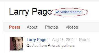 In sostanza, chi visualizza un profilo vedrà una sorta di "badge", un piccolo segno di spunta vicino al nome della persona. Passando il mouse sul segno di spunta, verrà mostrato l'avviso "nome verificato" laddove Google+ abbia già effettuato il check per questa persona. L'immagine sottostante è più esplicativa di mille parole.