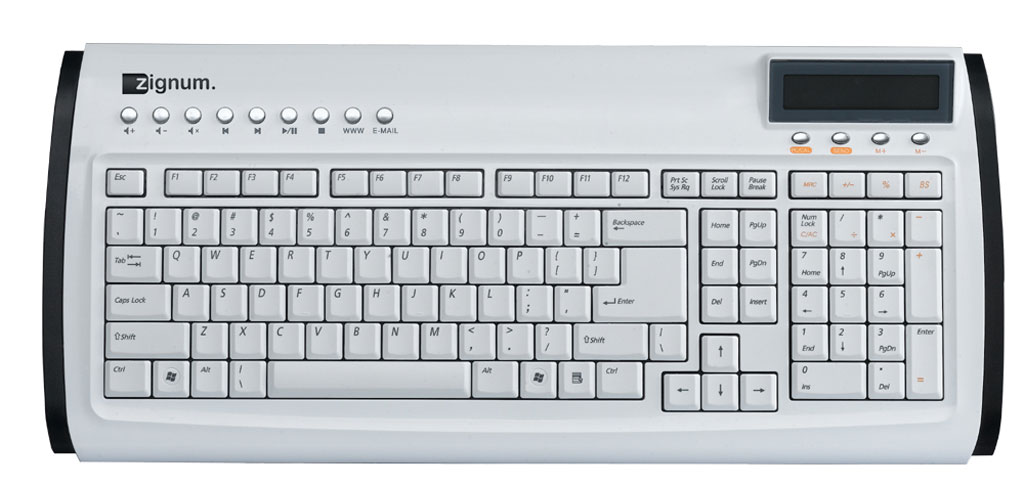La nuova Zignum Slim MM è un perfetto binomio tra una tastiera dall’ottimo design e una calcolatrice con display LCD a 12 cifre.