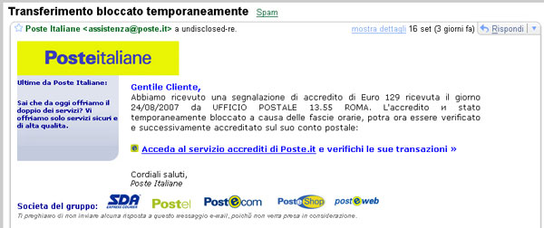 - [10/06/08] Ondata di phishing per Poste Italiane