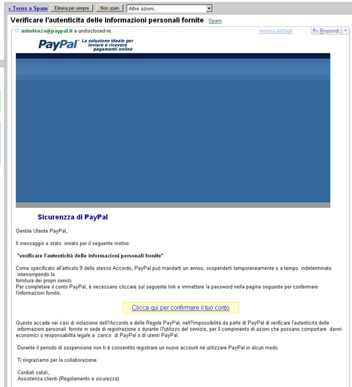- [08/05/08] Phishing PayPal: Procedura per Rimuovi Limitazioni