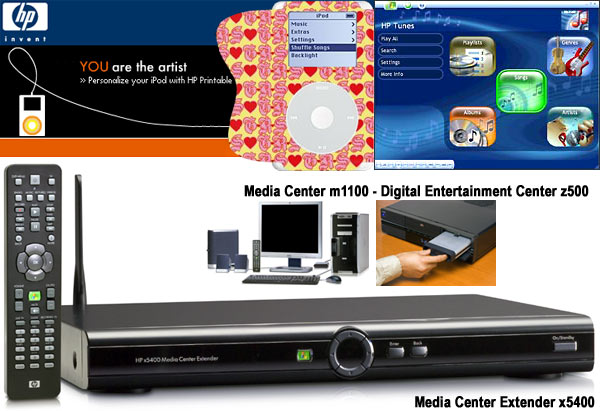 I prodotti di HP in grado di funzionare come Win Media Center sono quelli illustrati, c'è l'm1100 che è sostanzialmente un PC con funzioni multimediali, c'è Extender x5400 e il Digital Entertainment Center z500.