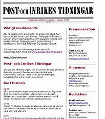 Il giornale più vecchio del mondo, il Post-och Inrikes Tidningar detto PoIT, esce ora online.