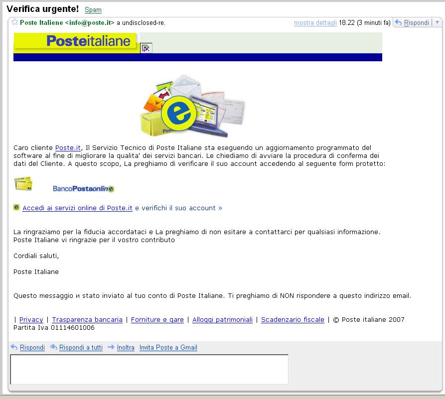 - [03/07/08] Phishing Poste Italiane: Vinci un viaggio a Ibiza, Spain con Poste Italiane