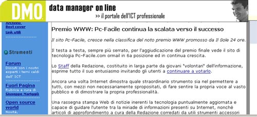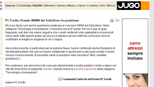 Queste settimane ci avete sentito parlare, nelle news e sul forum, del premio WWW organizzato, come ogni anno, dal sito del Sole24ore.