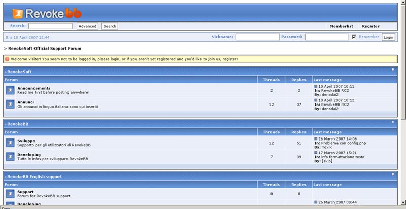 RevokeBB è uno script per bulletin boards scritto in PHP 4 sfruttando la programmazione ad oggetti.