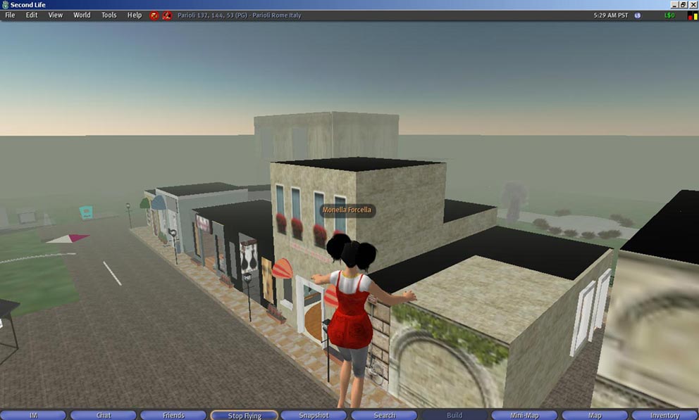 Monella si è fatta un giretto nei dintorni dell'entrata principale e tramite la funzione "Search" si è fatta teletrasportare al Parioli, sì il Parioli di Roma. Purtroppo, come già detto, per il processore ogni movimento in volo (puoi anche volare) è decisamente troppo e l'immagine spesso scatta o si blocca del tutto.
