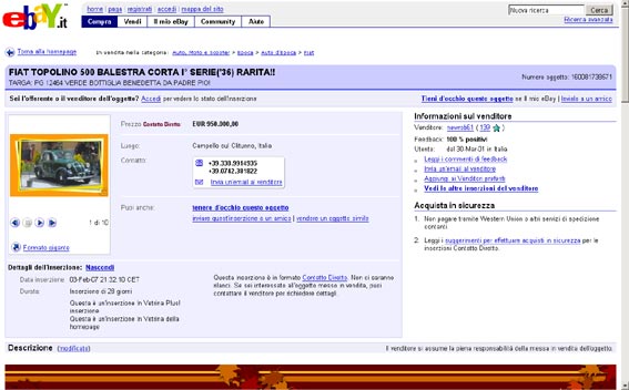 - [04/12/08] eBay, quell'articolo non s'ha da vendere...