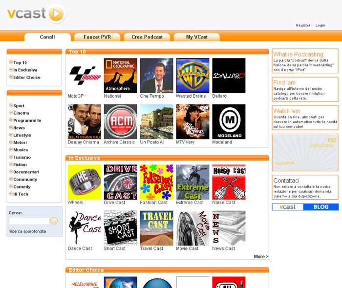 VCast attraverso Internet e il Personal Video Recorder vi permette di registrare i programmi televisivi da voi scelti e di scaricarli successivamente sul vostro pc.